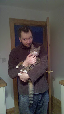 Sun set from our garder, Lovely Flowers from Grandma Dad and Ali, Thank you for them very much!, Chris cuddling our naughty kitten, Pango the Kitten, Our Bedroom, With Sea view window,